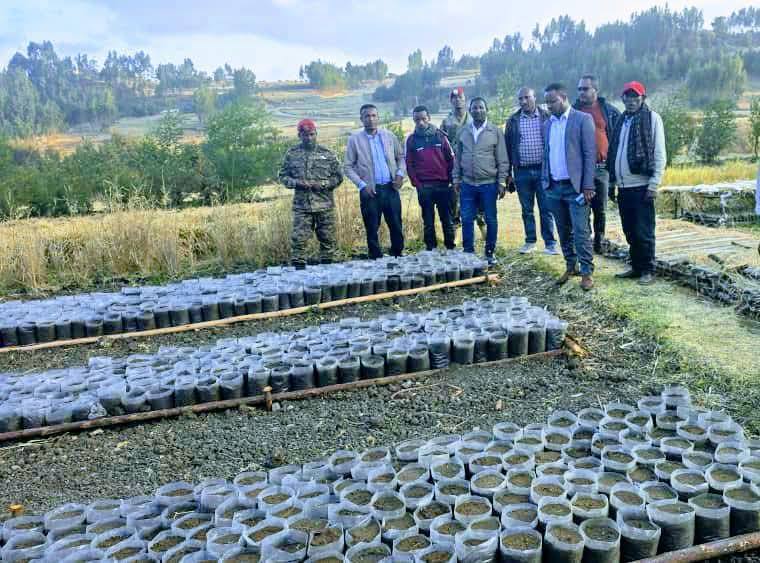 ሞላሌ ጥር 20/2018ዓ.ም(መማመኮጉ)በሰሜን ሸዋ ዞን መንዝ ማማ ምድር ወረዳ በአምቦውሃ ችግኝ ጣቢያ በዘመናዊ የግብርና ልማት ስርዓት እየለማ ያለ ችግኝ ተጎብኝቷል።